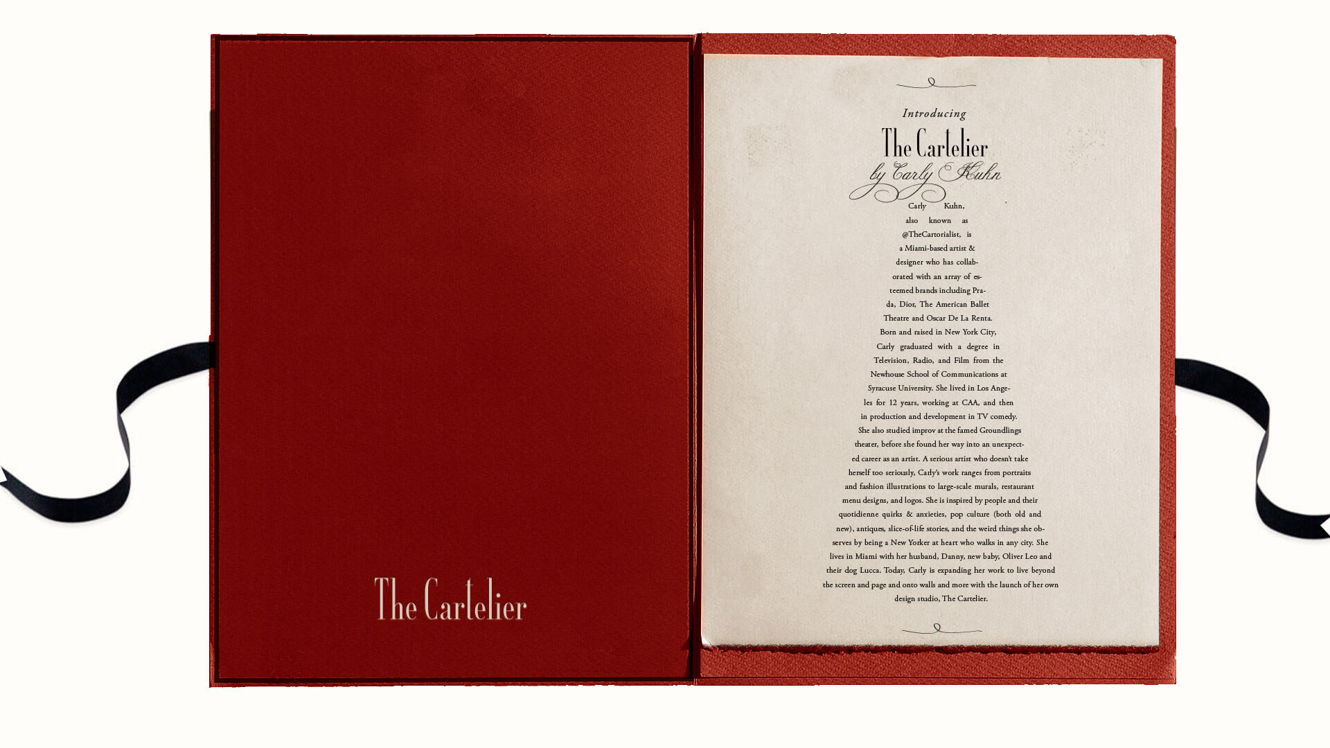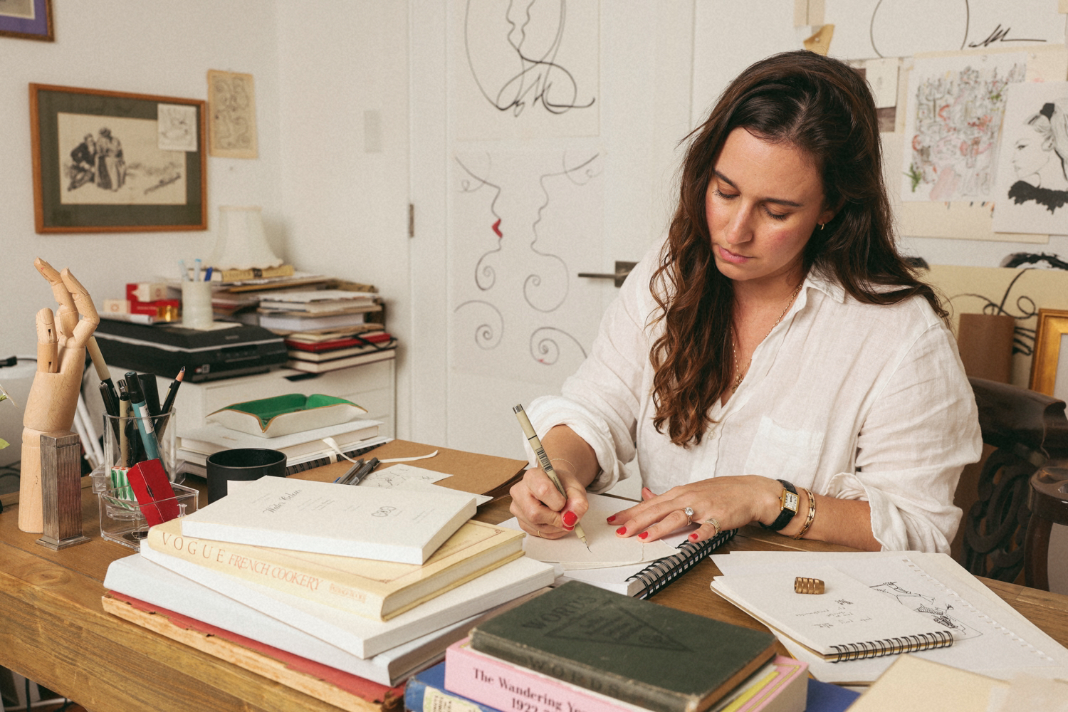 Carly Kuhn (formerly known as The Cartorialist) is an illustrator and writer whose work is defined by a love of the line, where wit, whimsy, and sophistication collide. Born and raised in New York City, she has collaborated with Bergdorf Goodman, Rosewood Hotels, Tory Burch, Sotheby’s, Thom Browne, and the American Ballet Theatre. Her forthcoming illustrated book, "A Character Study" (set to publish in 2026), explores human behavior and fleeting moments with both humor and elegance, shaped by her lifelong practice of observing the world as a New Yorker at heart. Alongside her book, she has launched a hand-drawn wallpaper line - delicate designs that feel as if she came in and sketched directly on the wall, at once timeless and nostalgic yet fresh and modern. A complement to her wallcoverings, Carly and Everhem introduced a capsule window treatment collection in Spring 2025, showcasing four of her original designs. Her work spans paper goods, illustration, and design, often weaving in hand-lettering and limericks to create pieces that are as clever as they are refined. In every medium, she brings a playful eye and a thoughtful hand to transform the everyday into something artful.