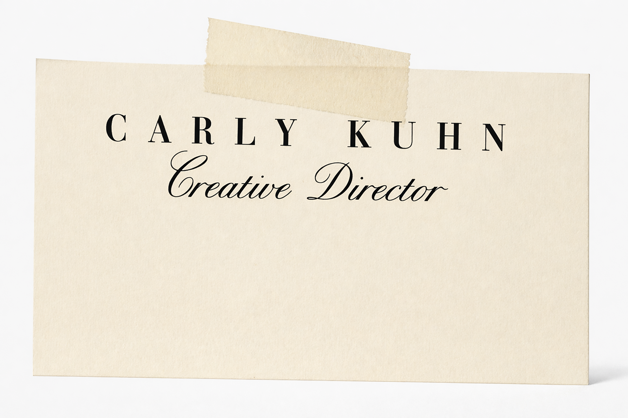 Carly Kuhn is an artist and author whose work began during the Instagram era and has since evolved into a distinctive exploration of observation, line, and quiet humor. Formerly known as The Cartorialist, she is recognized for drawings that balance wit with restraint, transforming fleeting moments into something enduring. Born and raised in New York City, Kuhn approaches the world with the attentive eye of a lifelong observer - equal parts sophistication and curiosity - a sensibility that informs both her illustrations and her writing. She has collaborated with cultural institutions and heritage brands including Bergdorf Goodman, Sotheby’s, Tory Burch, Thom Browne, Rosewood Hotels, and American Ballet Theatre. Her forthcoming illustrated book, A Character Study (2026), reflects her fascination with human behavior and the poetry of everyday life. Extending her signature line beyond the page, Kuhn has introduced a collection of hand-drawn wallcoverings - delicate designs that feel as though they were sketched directly onto the wall - translating her artistic language into interiors with a sense of quiet timelessness. In Spring 2025, she partnered with Everhem on a capsule window treatment collection featuring four of her original patterns, further expanding her work into the domestic landscape. Working across paper goods, illustration, and design, Kuhn creates pieces that feel intimate yet enduring - often weaving hand-lettering and subtle humor into compositions that reward a closer look. Now based in Michigan, her practice continues to expand thoughtfully, guided by a belief that the most meaningful work invites us not just to look, but to notice.