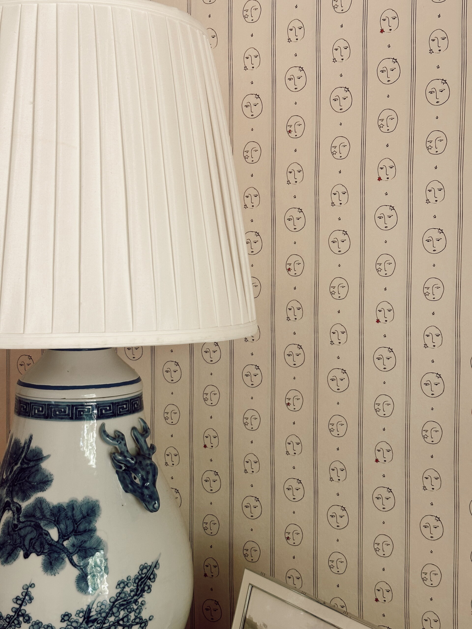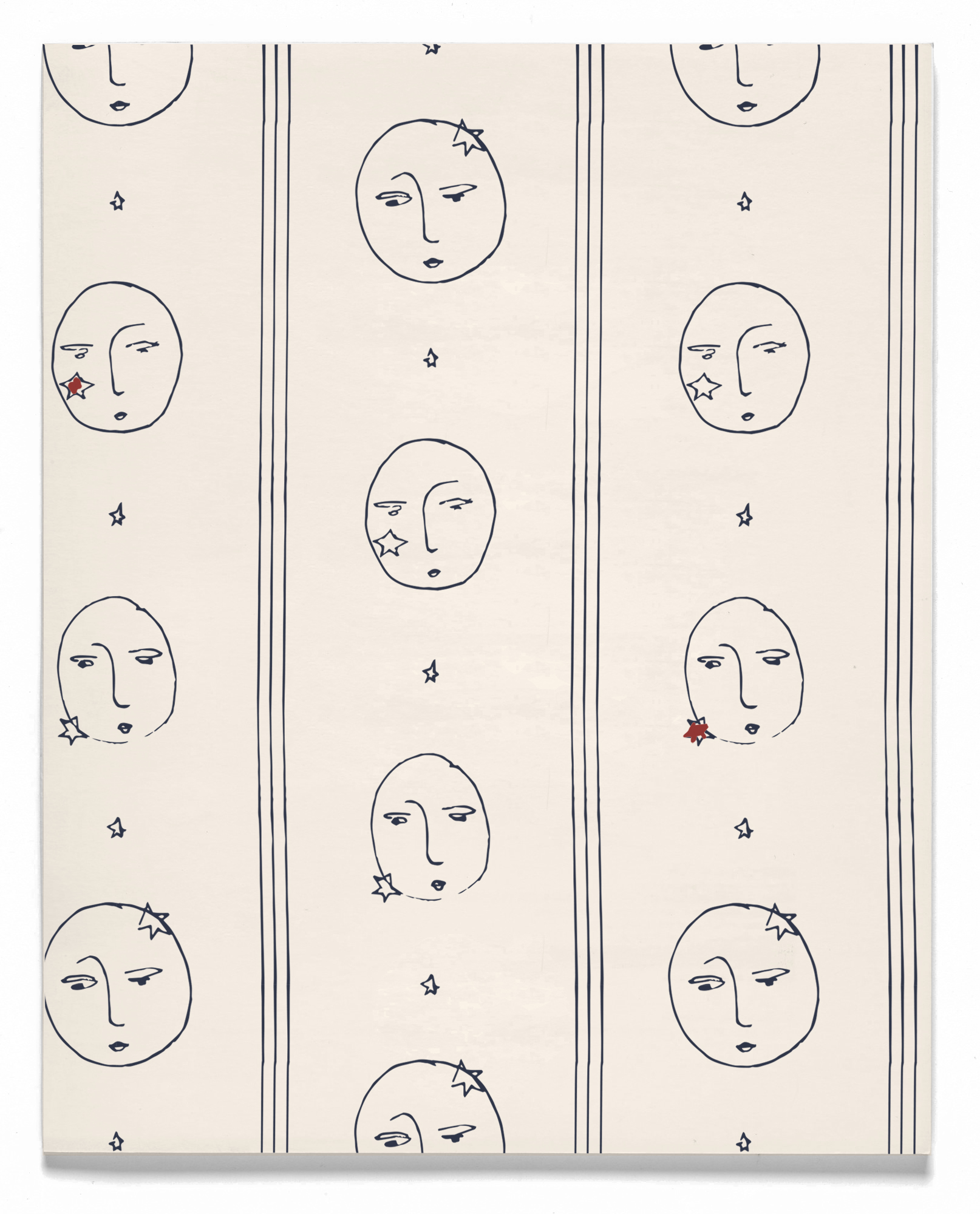 Carly reimagined a late 14th-century Viennese alchemical manuscript illustration for the Starry Moon pattern, crafting a whimsical yet contemporary design. Striped elements lend a traditional feel. All of these qualities create a highly versatile pattern, suitable for any room you desire. Width: 27″ Repeat: Horizontal 9″ Vertical 13.5″ Match: Straight.