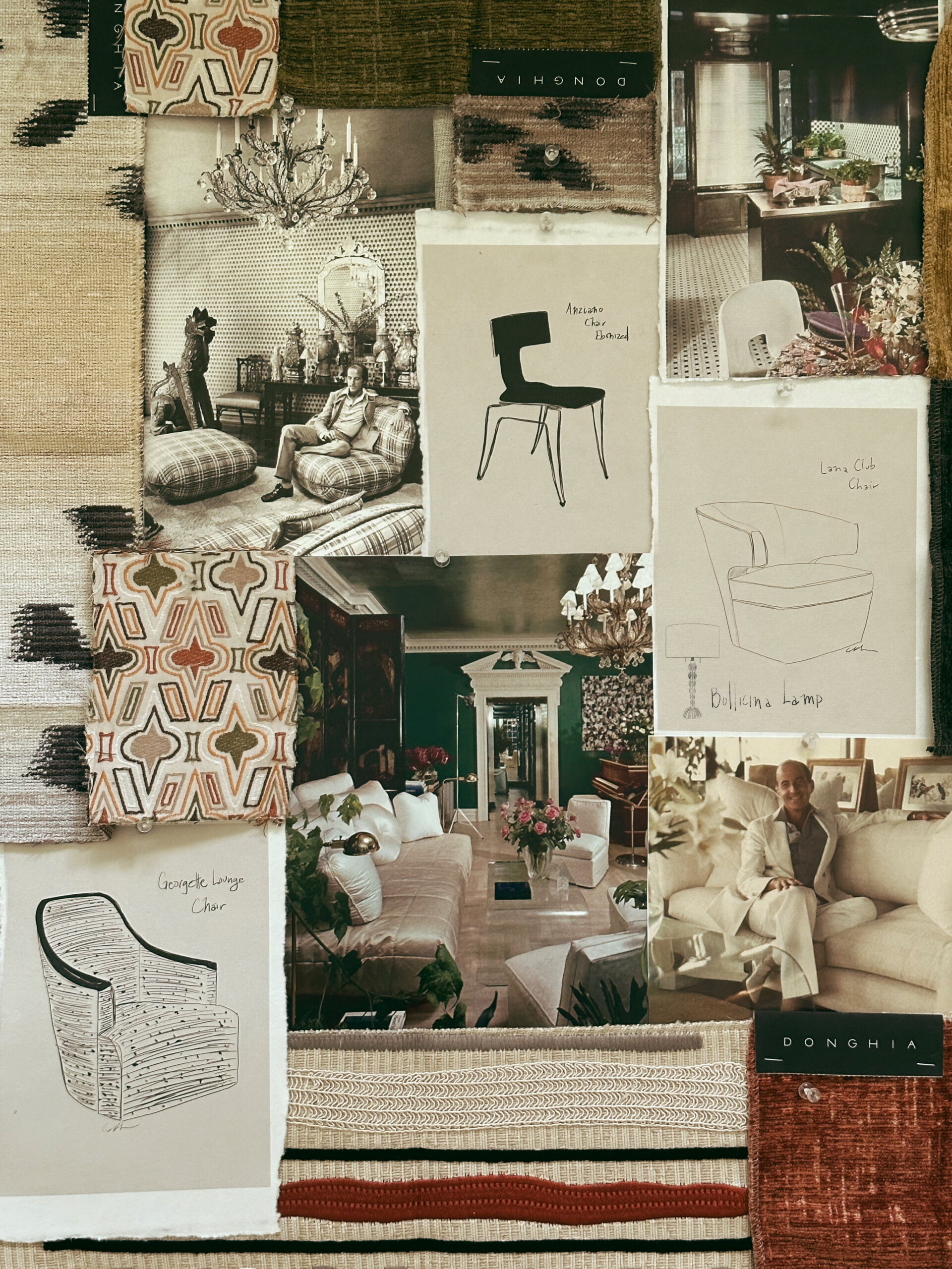 Carly created two pieces for Donghia celebrating legendary designer Angelo Donghia. Angelo’s trend-setting, innovative approach shaped the design world; here, Carly reimagined some of his iconic moments in a textile inspired sample mock-up and layered mood-board.
