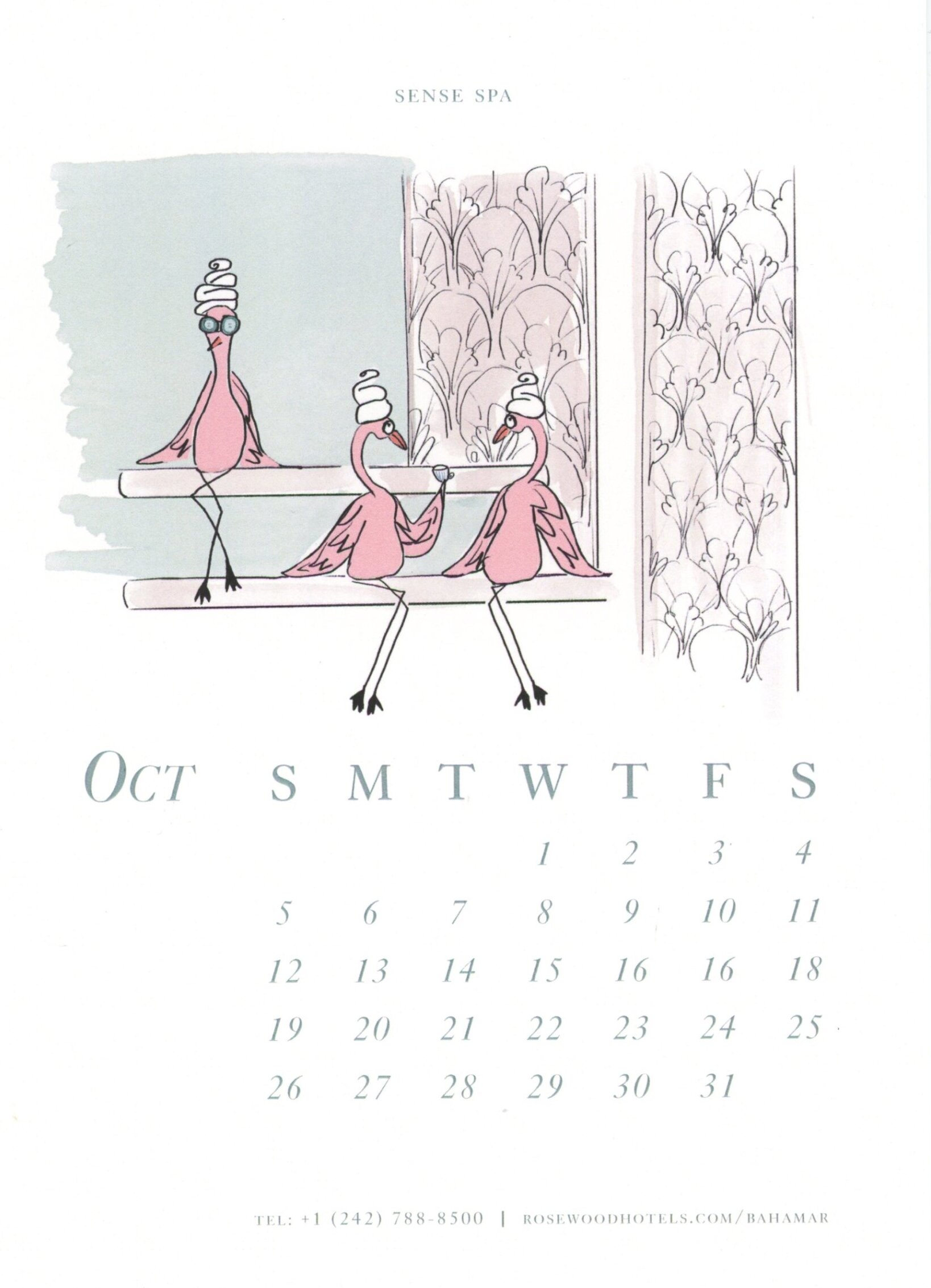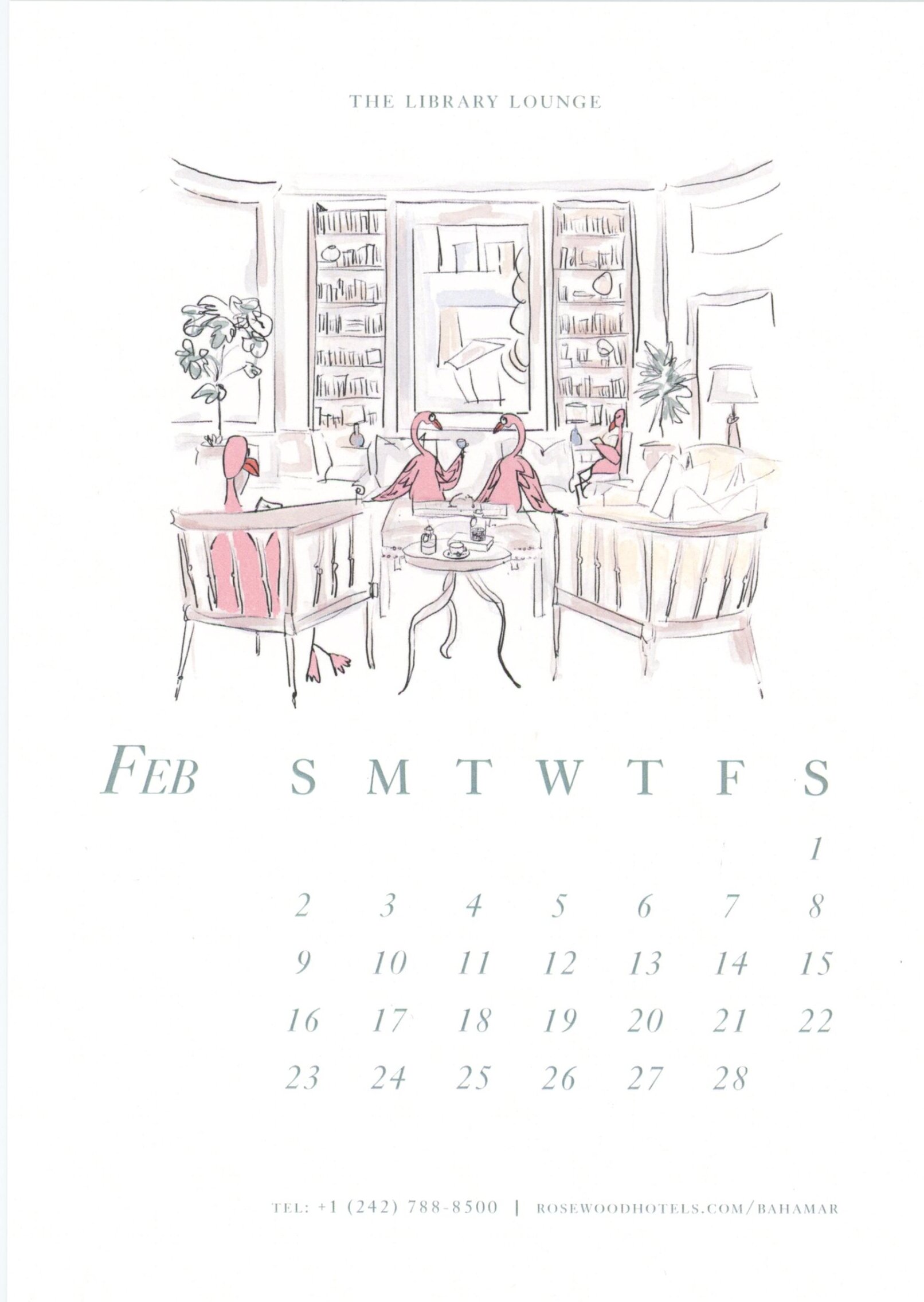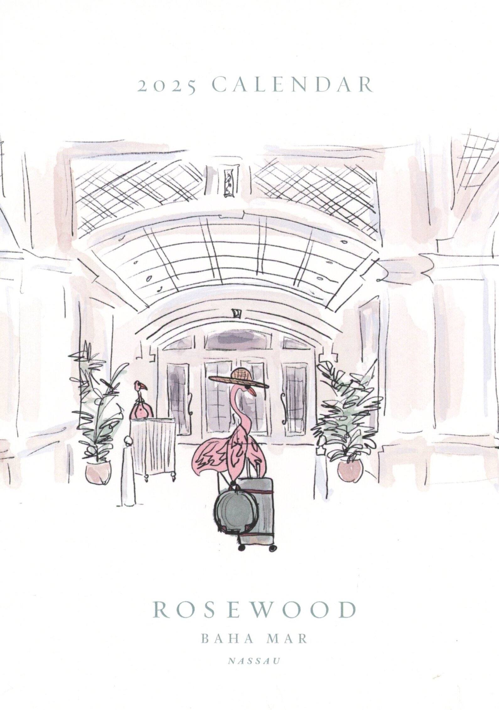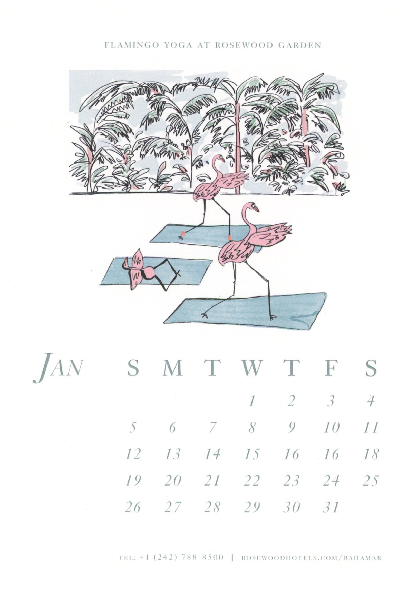For Carly’s collaboration with Rosewood Baha Mar, Carly created illustrations for an array of the Resort’s Holiday Festive programming including a calendar featuring the hotel’s ambassadors- the flamingos- showcasing all of the activities offered at the hotel.