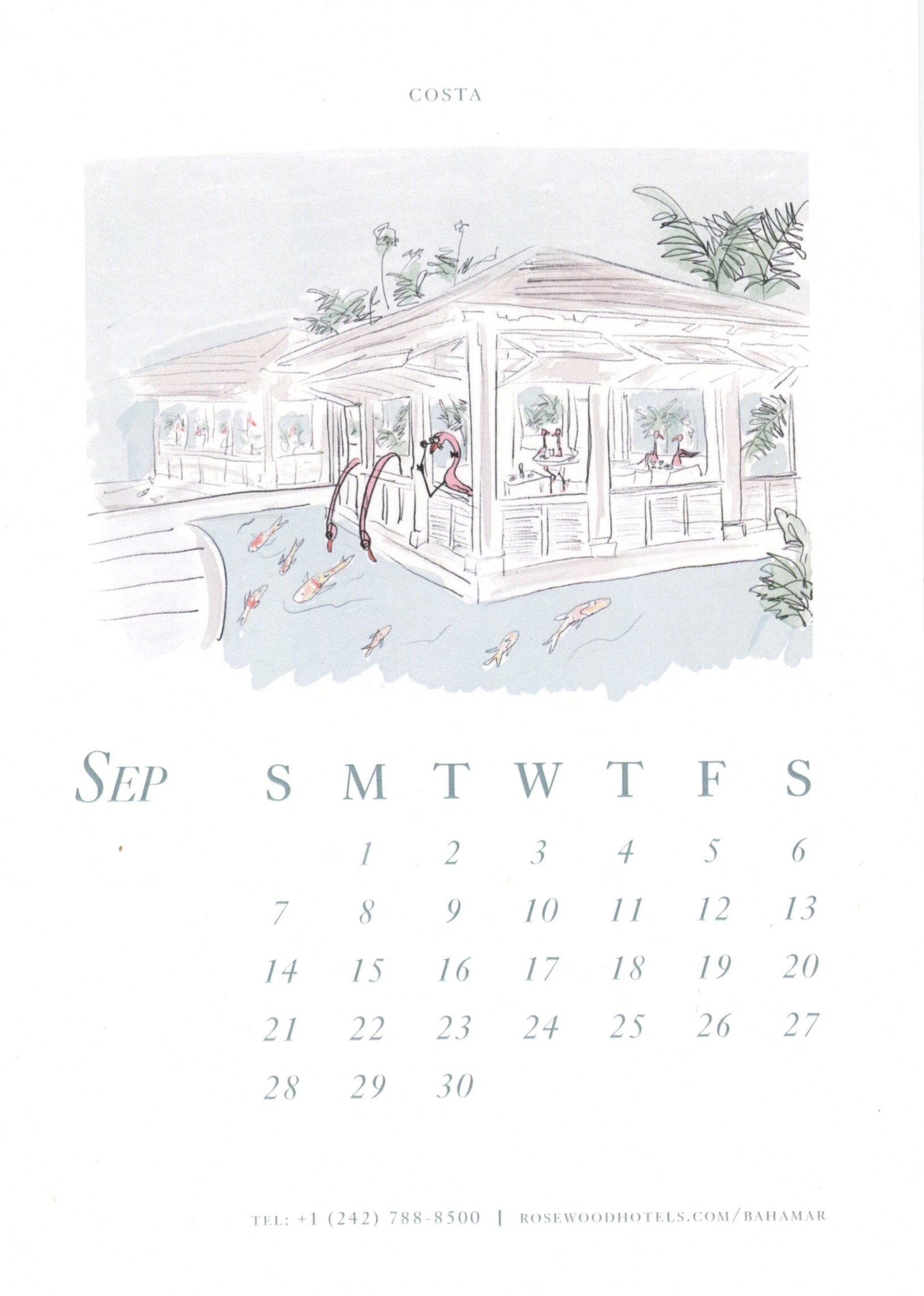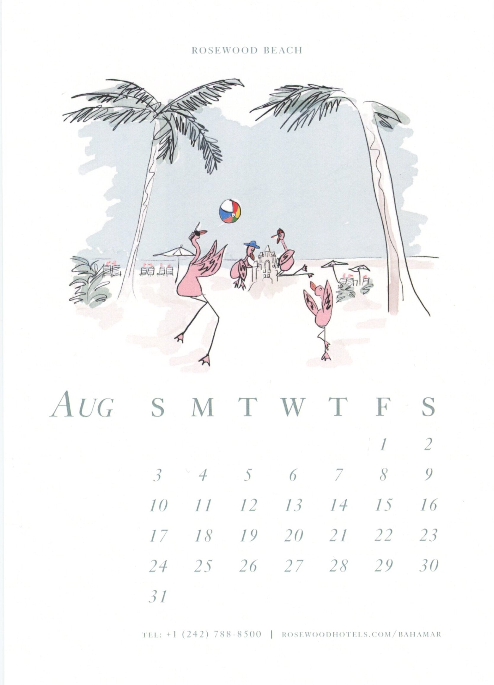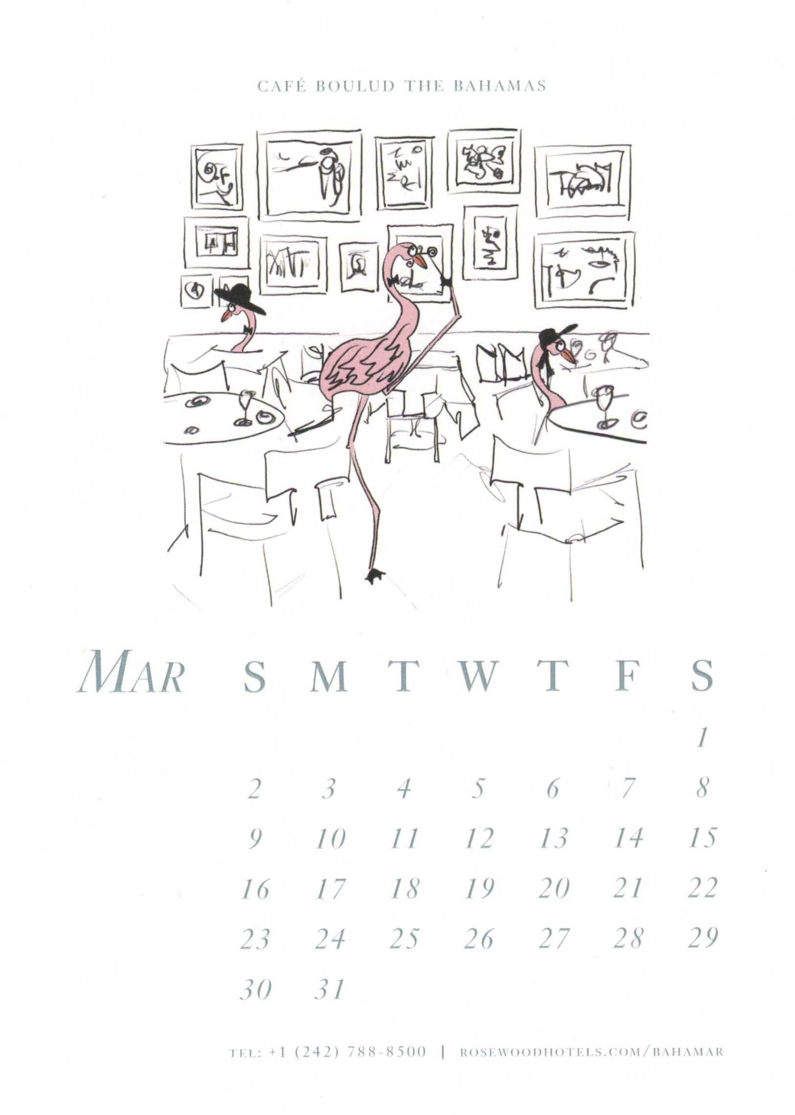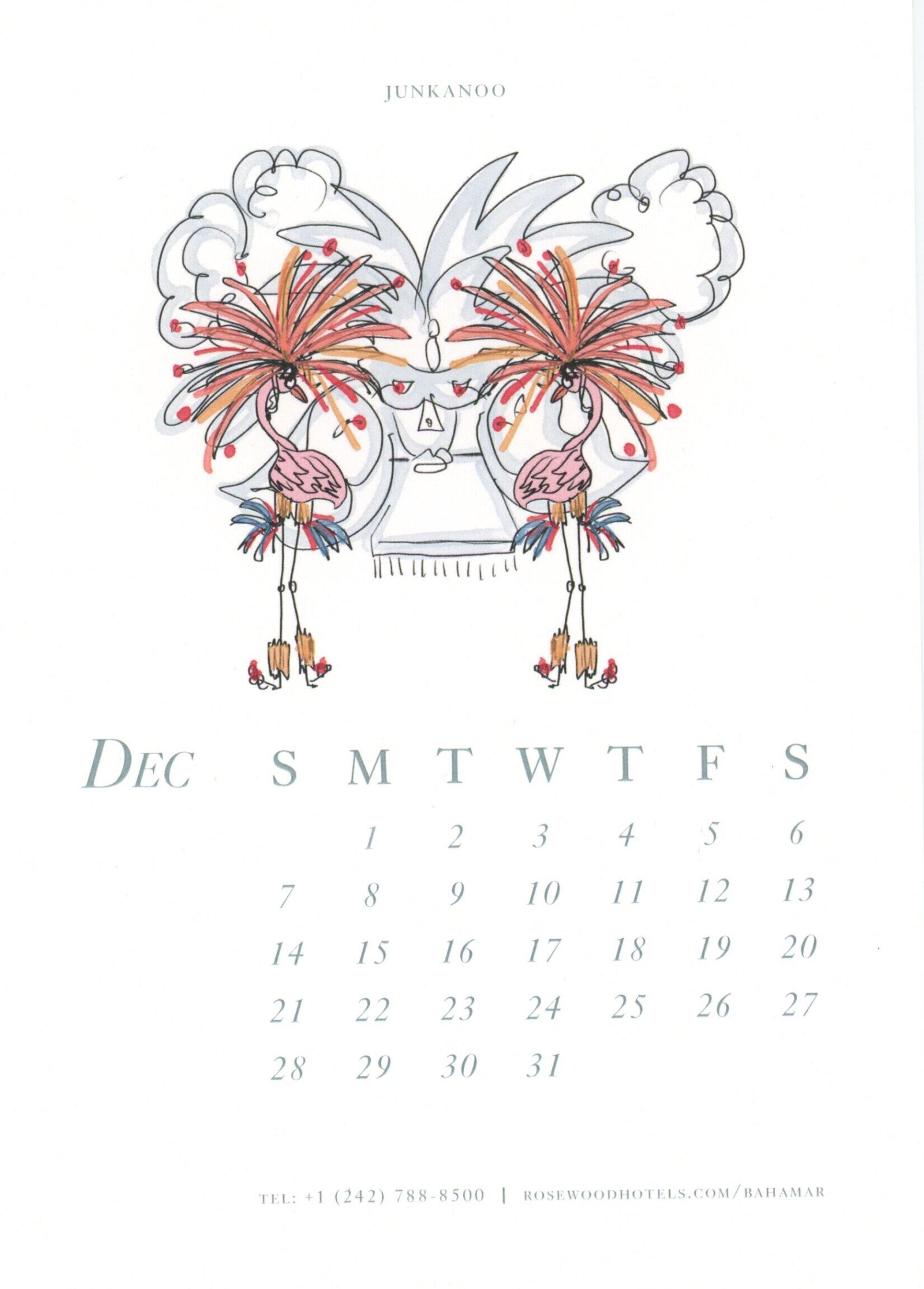 For Carly’s collaboration with Rosewood Baha Mar, Carly created illustrations for an array of the Resort’s Holiday Festive programming including a calendar featuring the hotel’s ambassadors- the flamingos- showcasing all of the activities offered at the hotel.